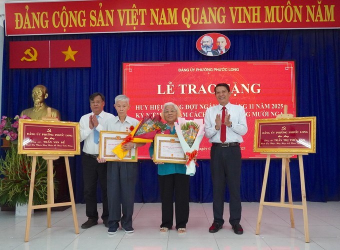 Dịp này, có vợ chồng đảng viên là đồng chí Trần Văn Để và Trần Thị Thúy Lan (sinh hoạt tại Đảng bộ phường Phước Long) cùng nhận Huy hiệu 60 năm tuổi Đảng.